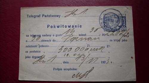 W Polsce w 1919 roku pozostawiały w obrocie pocztowym pozostałości austriackich dowodów nadania telegramów, które opatrzono ozdobnym nadrukiem ze słowami Poczta Polska.